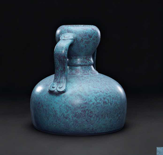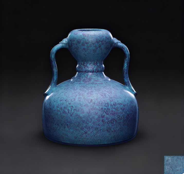 爐鈞釉是清代雍正年間創燒的一種特殊釉色品種,隸屬於窯變釉體系,因採用「爐內燒製」的工藝而得名。這件雍正爐鈞釉如意耳尊,通體高約 28 厘米,造型飽滿勻稱,頸部兩側裝飾一對如意形耳,寓意「吉祥如意」,器身線條流暢婉轉,尽显皇家器物的莊重與雅致。